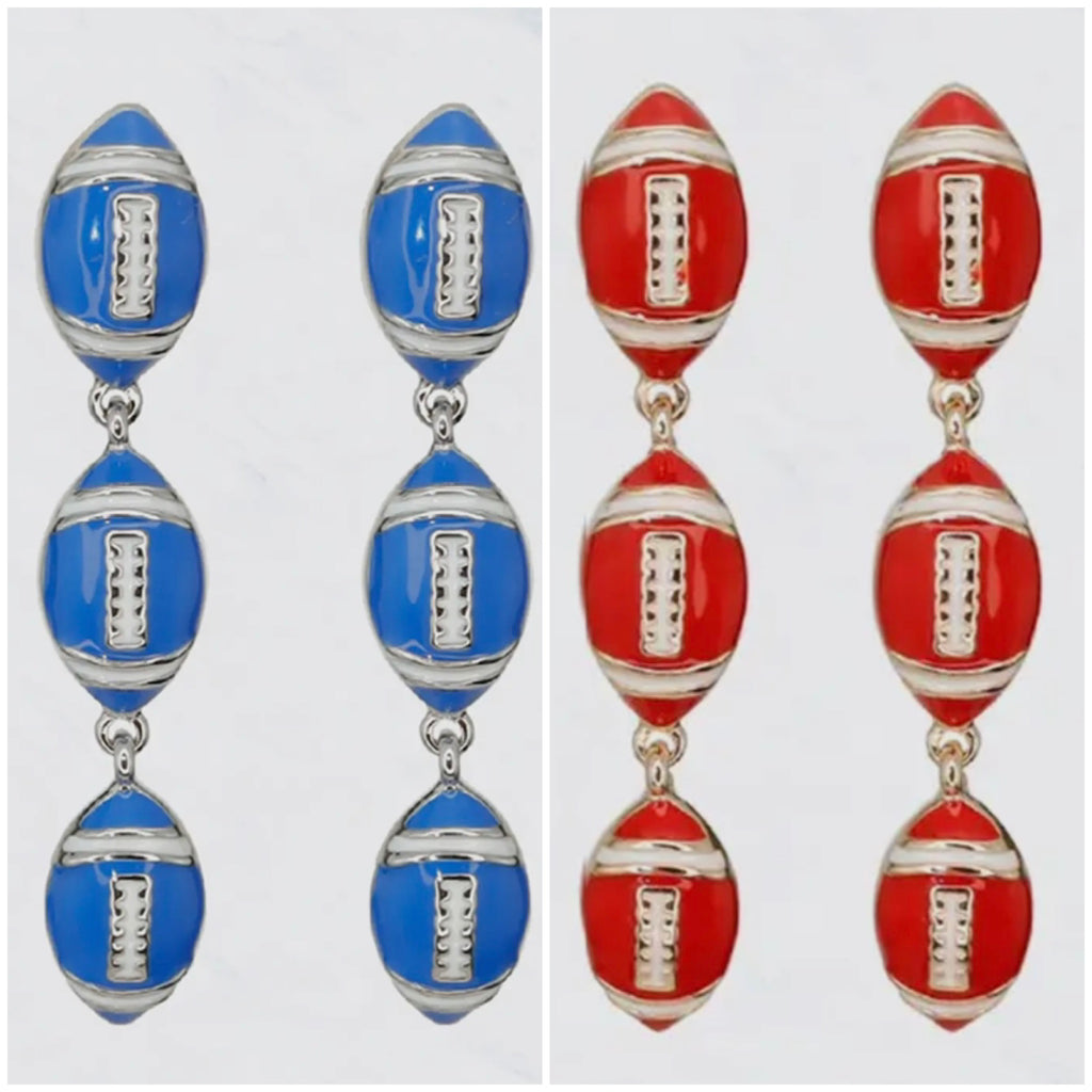 TASSEL TINSEL TIERED FOOTBALL GAMEDAY COLORED EARRINGS BY P.O.