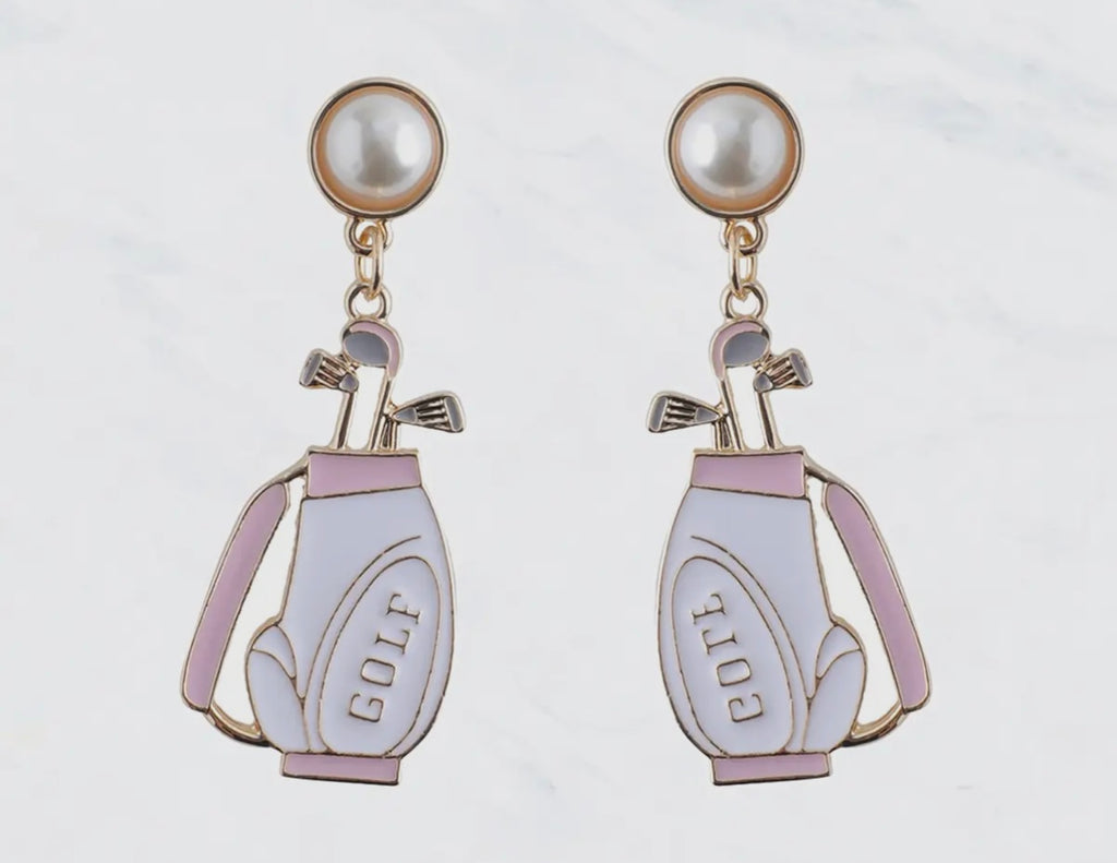 WHITE GOLF BAG PEARL STUD EARRINGS