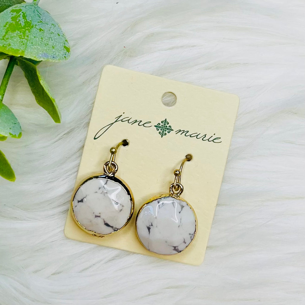 White Marble Round Gemstone Earrings