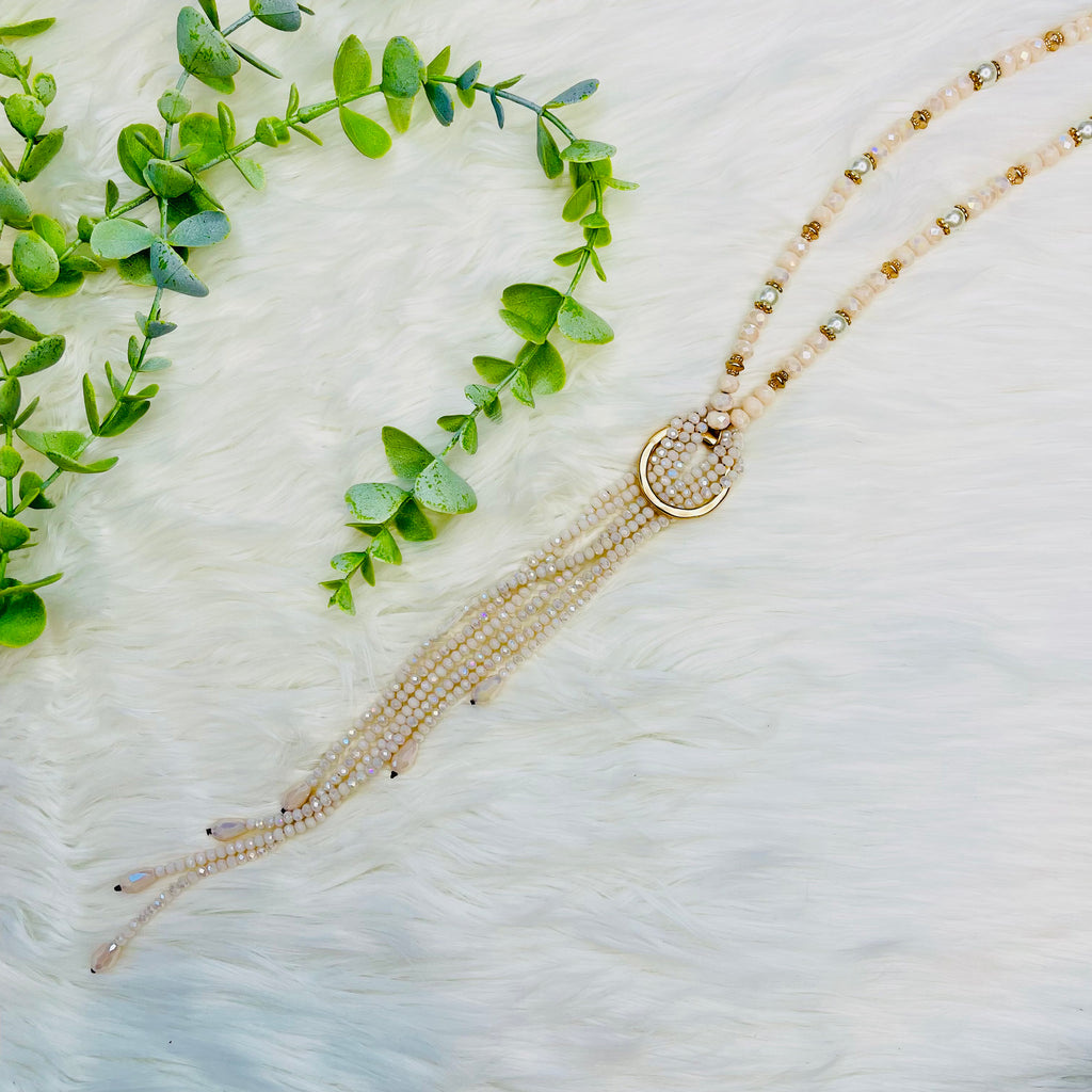 White Pink Beaded Gold Circle Twisted Necklace