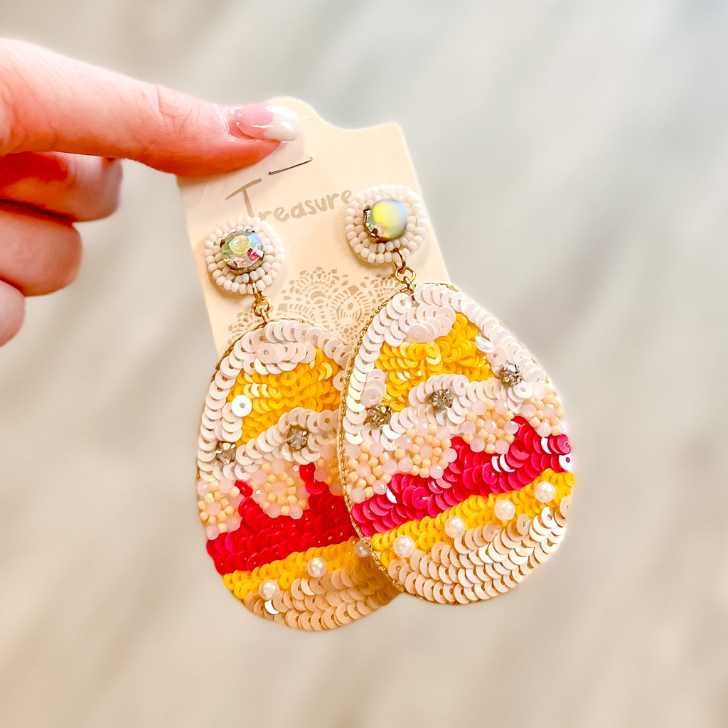White Pink Easter Egg Earrings