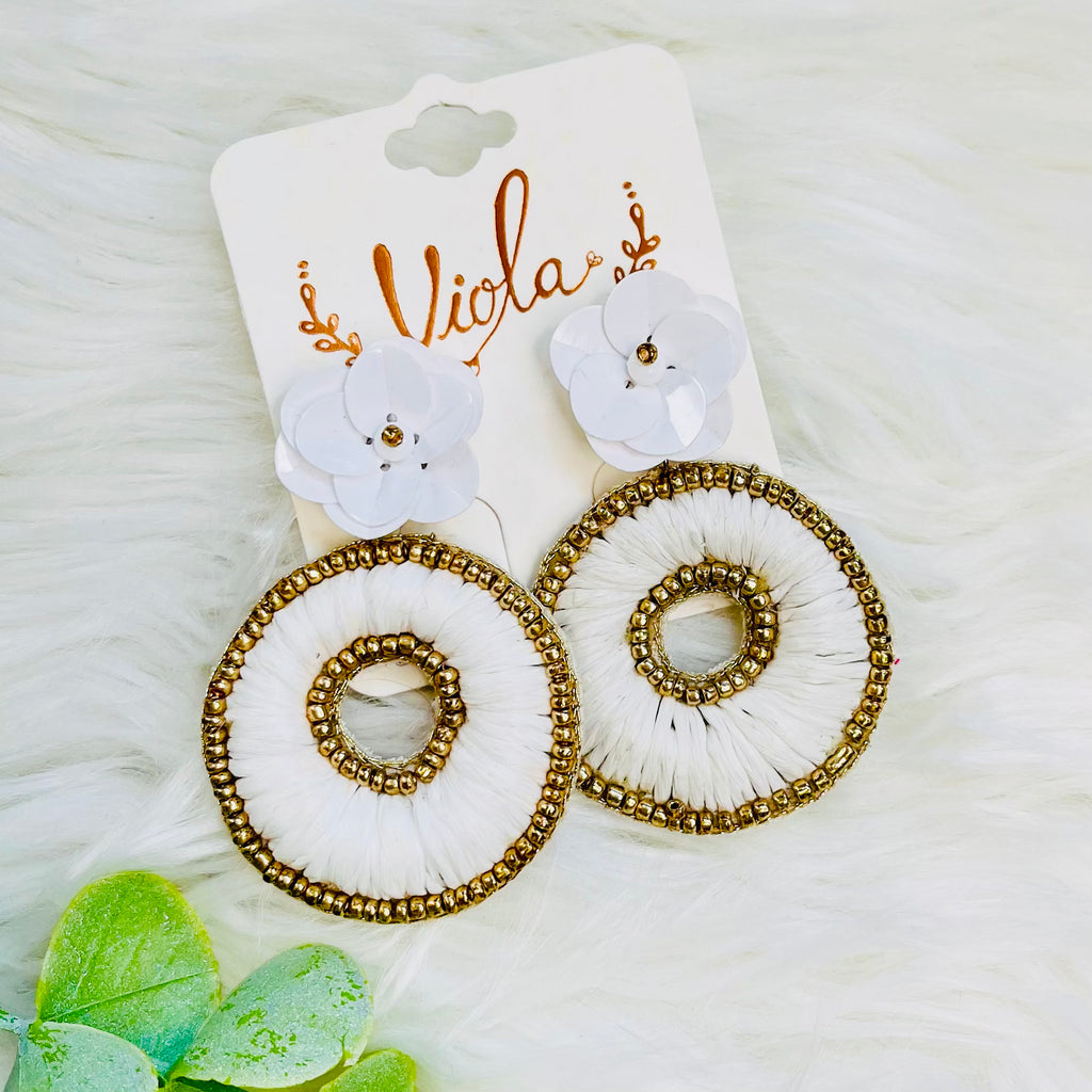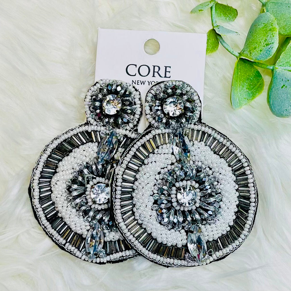 WHITE TAN BROWN EASTER BUNNY SEEDBEAD POMPOM EARRINGS