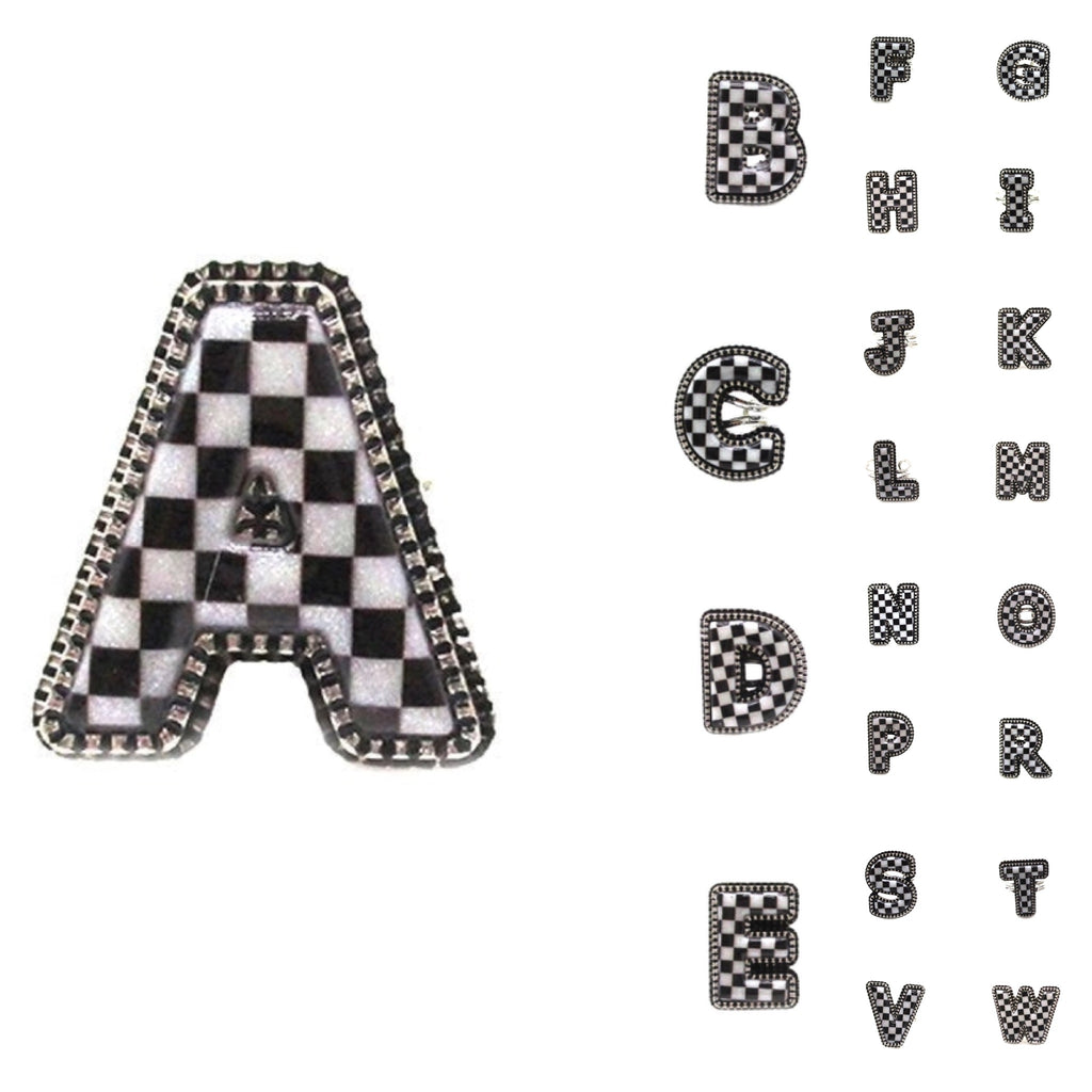 CHECKERED BUBBLE INITIAL BLACK & WHITE ON SILVER CHAIN WITH 18" + 3" EXTENDER NECKLACE