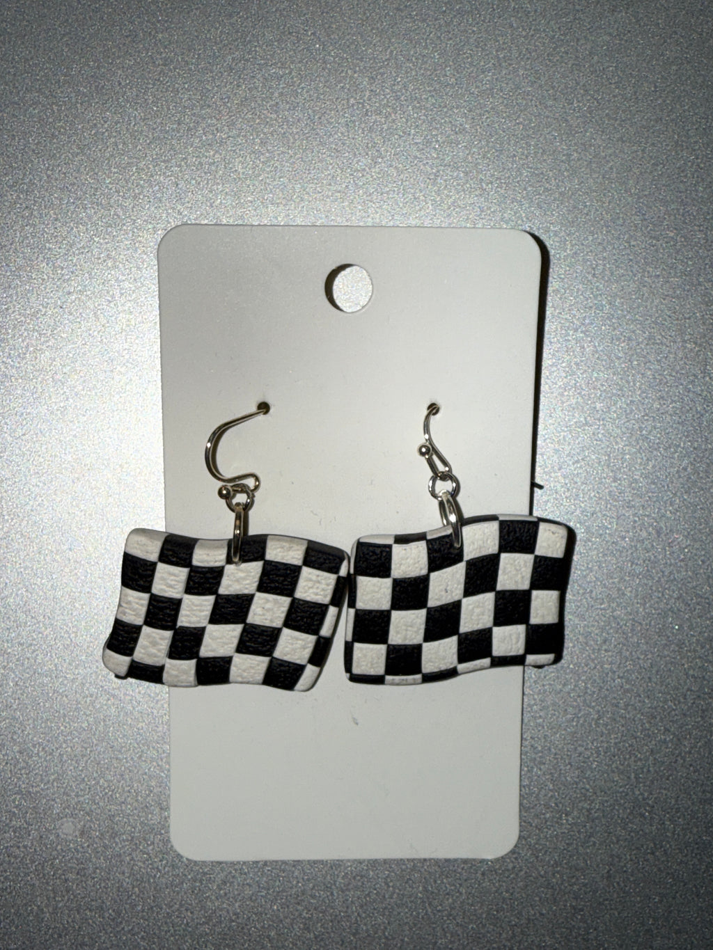 CLAY HANDMADE CHECKERED FLAG DESIGN DANGLE EARRINGS