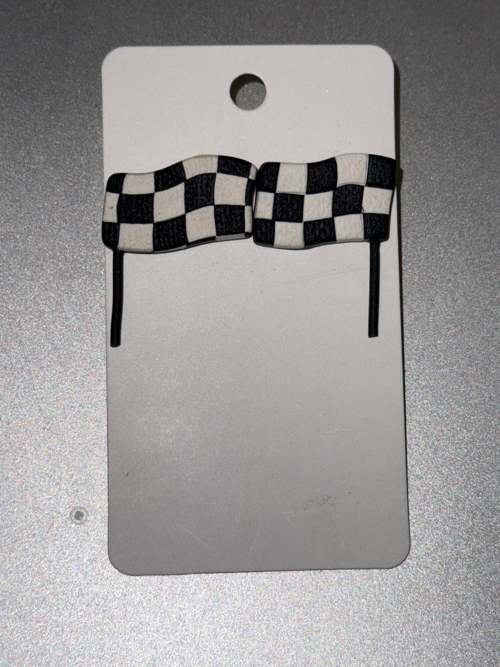 CLAY HANDMADE CHECKERED FLAG DESIGN WITH POLE STUD EARRINGS