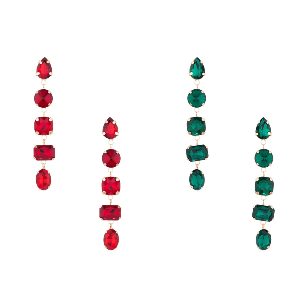 CRYSTAL GEM STONE DANGLY STATEMENT CHANDELIER EARRINGS