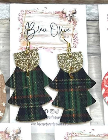 GREEN FLANNEL LOOKING PLAID WITH GOLD GLITTER ACCENTS HANDMADE EARRINGS BY B.O.D