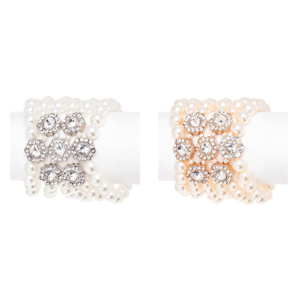 CRYSTAL FLOWER SHAPE CLUSTER OF RHINESTONES PEARL LAYERED STATEMENT COCKTAIL-FORMAL BRACELET