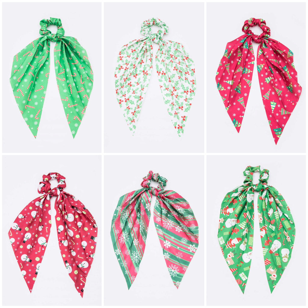 SATIN HAIR SCRUNCHIE SCARF RIBBON WITH CHRISTMAS PRINTS
