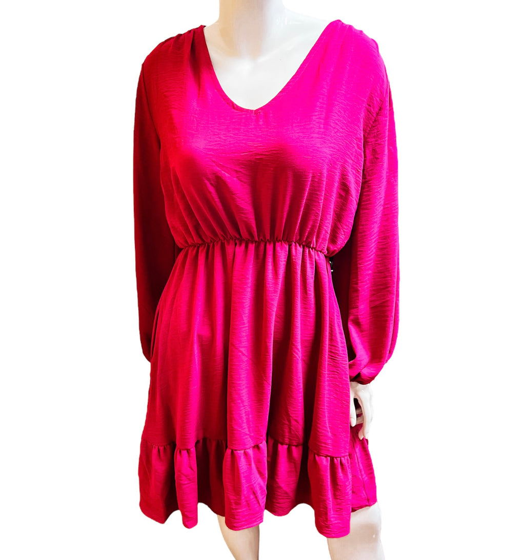 Magenta Bubble Puff Sleeve Pocketed Woven Dress-PLUS