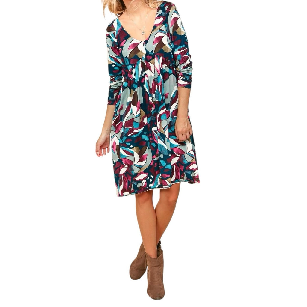 TEAL VIBRANT PRINT 3/4 SLEEVE POCKETED DRESS