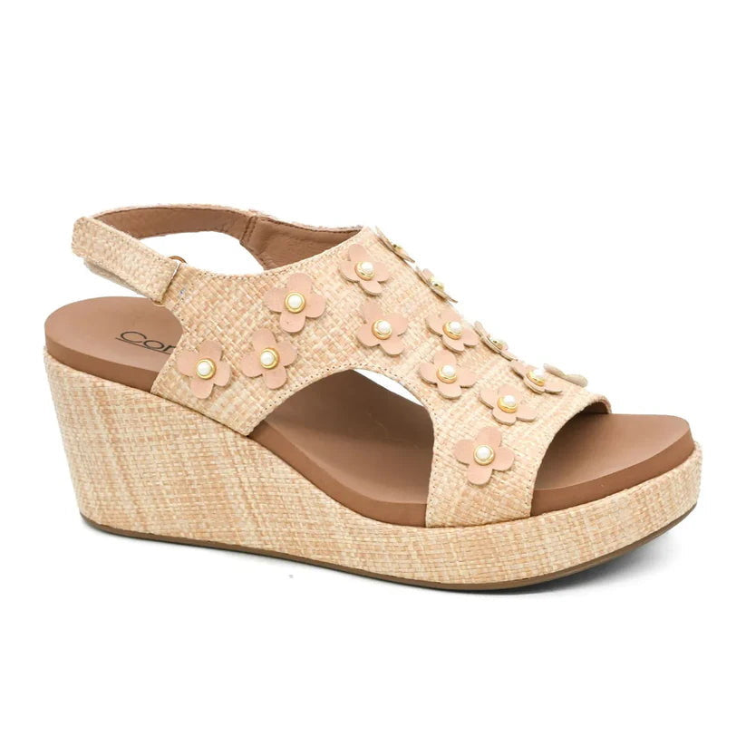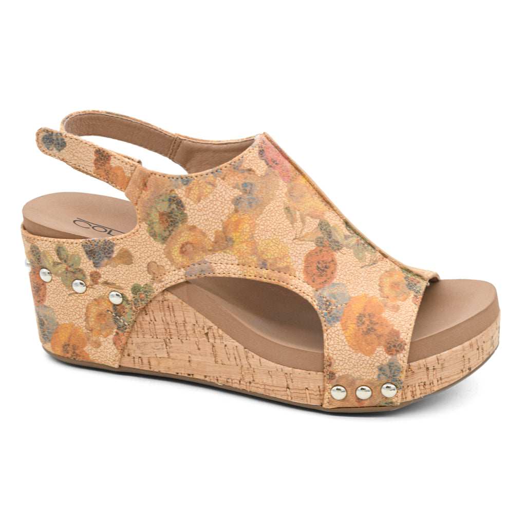 CARLEY CAMEL WASHED FLOWER CORKYS SANDAL WEDGES