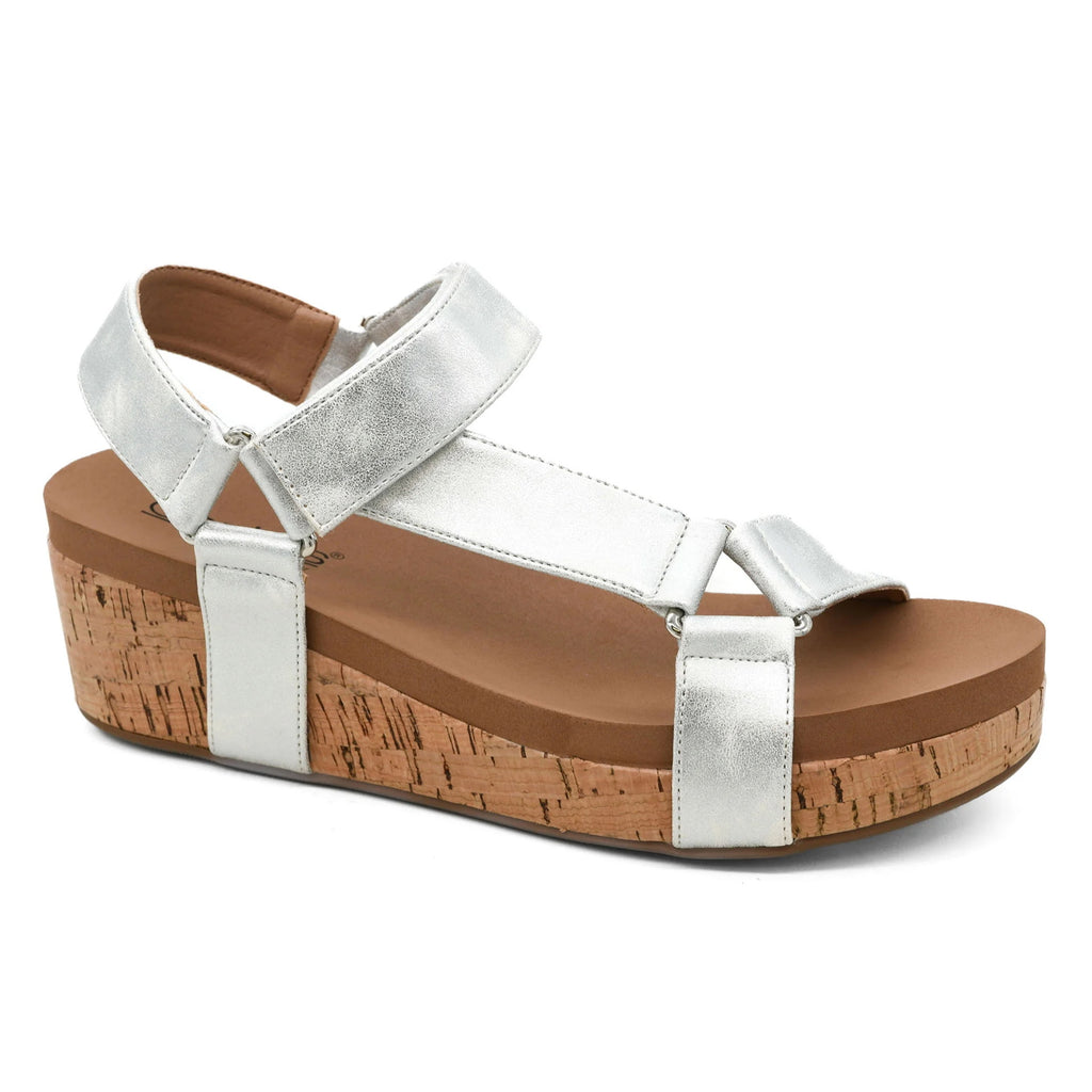 READY OR NOT BRONZE METALLIC CORKYS SANDAL WEDGES