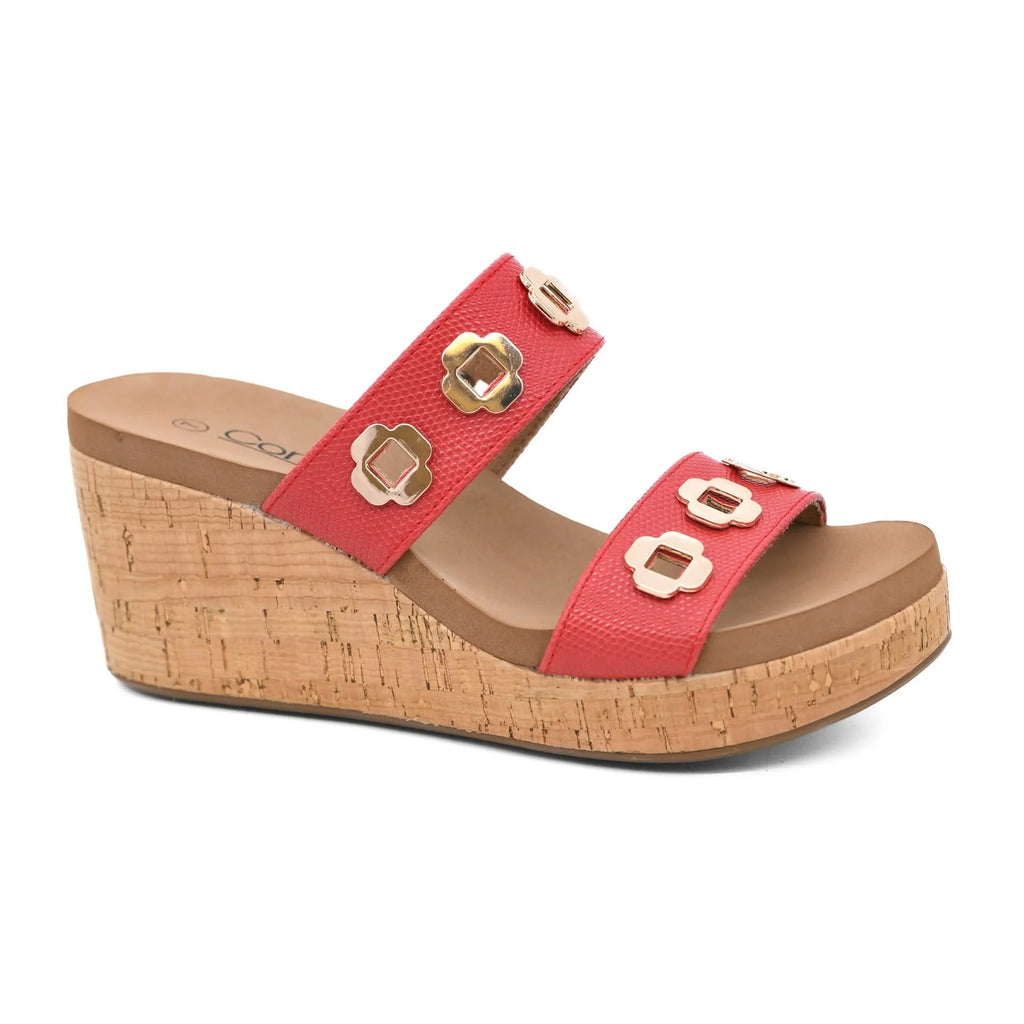 CARLEY COGNAC TUMBLED CORKYS SANDAL WEDGES