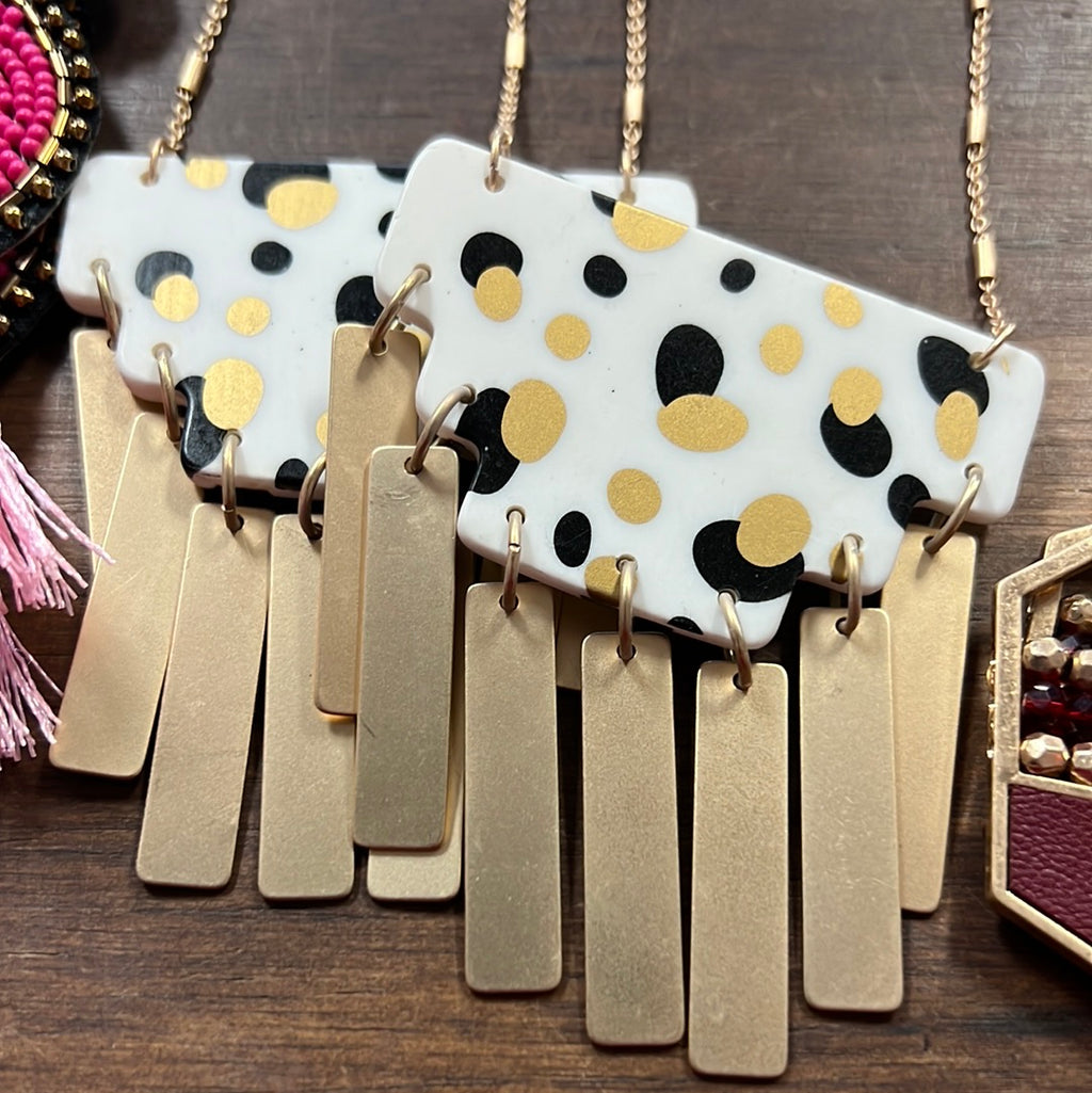 Gold Metal Fringe White Gold Black Dots Necklace