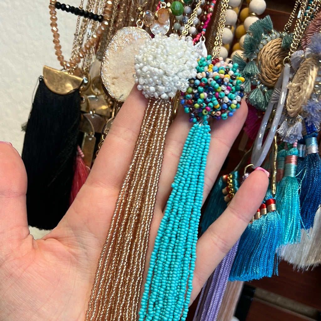 Gold Chain Seedbead Tassel Cluster Necklace