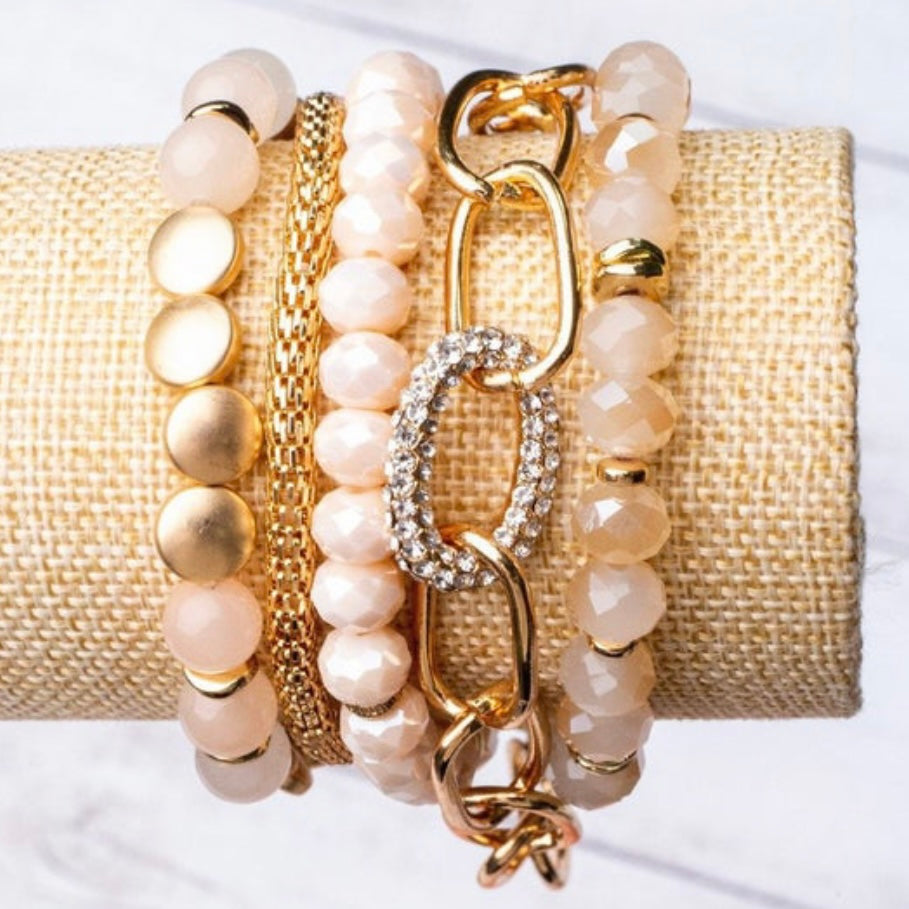 Rose Gold Blush Crystal Gold Link Bracelet Set of 5