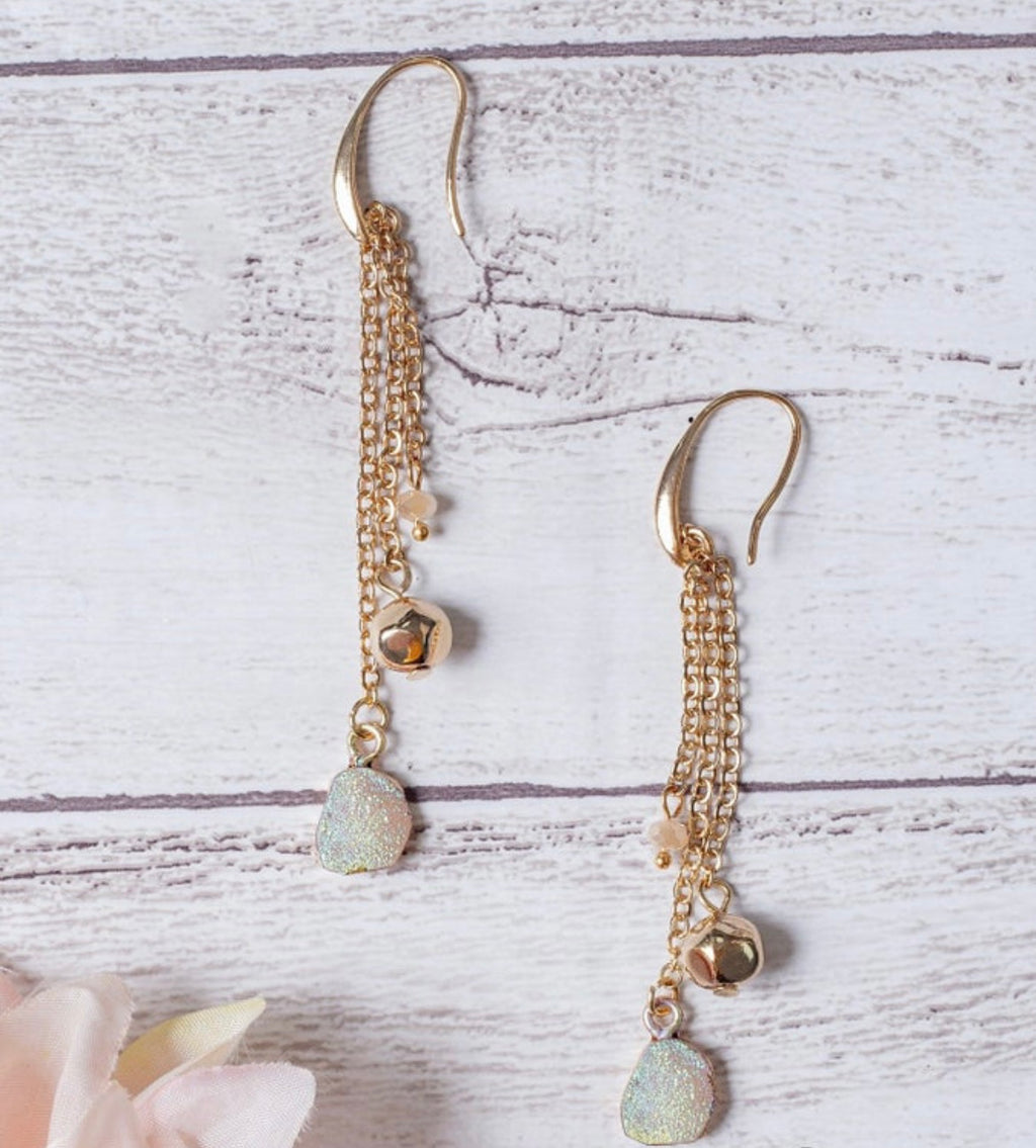 Simplistic Heart Iridescent Druzy Dainty Earrings