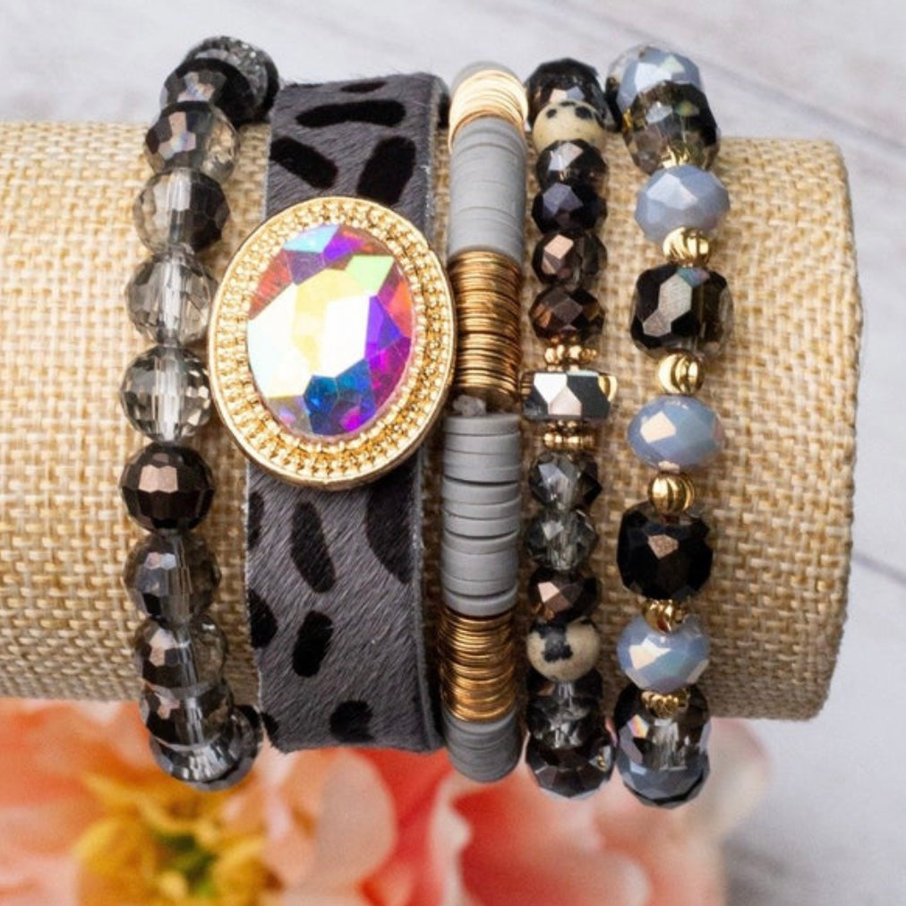 Giddy Up Cowgirl Black Hide Bracelet Set of 5