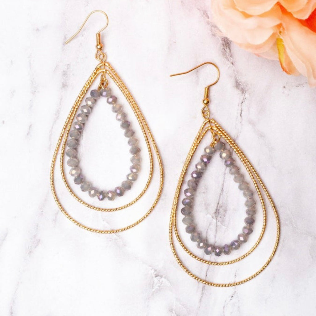 Grey Crystal Teardrop Layered Earrings