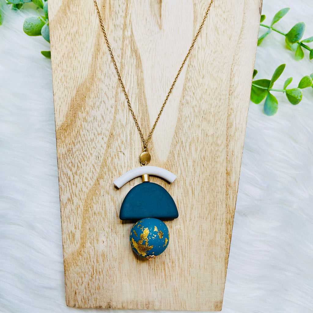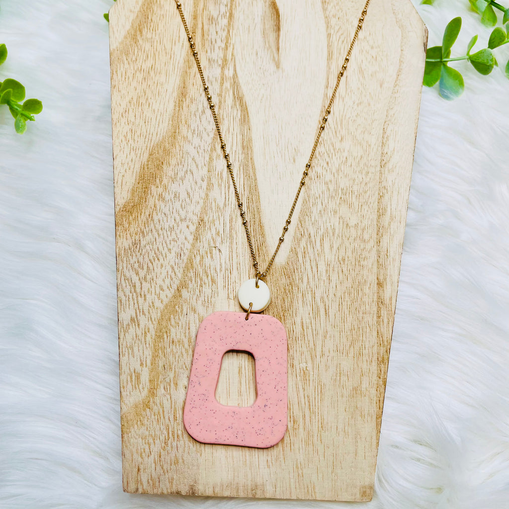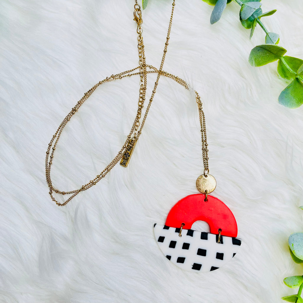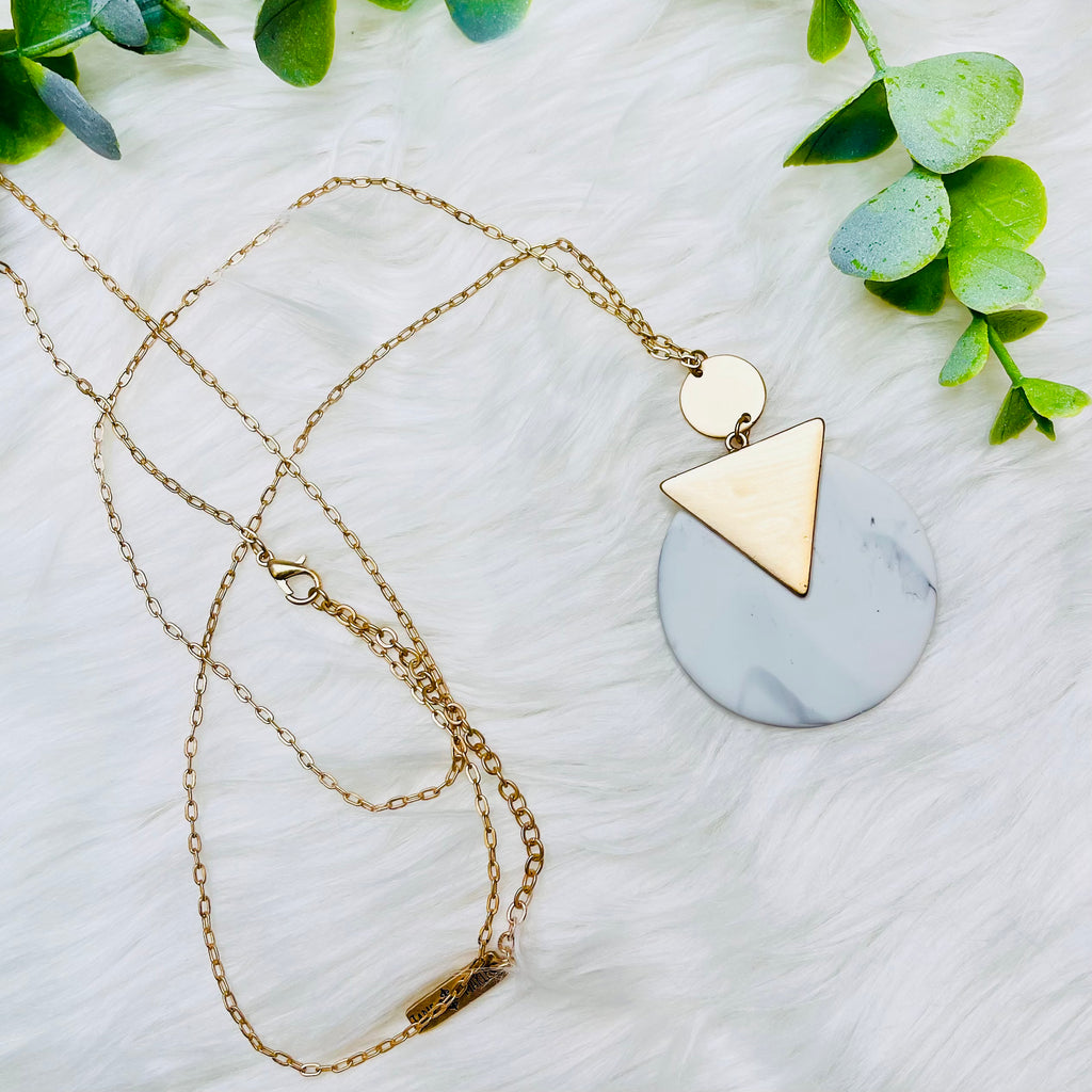 Marbled Circle Polymer Clay Gold Chain Necklace