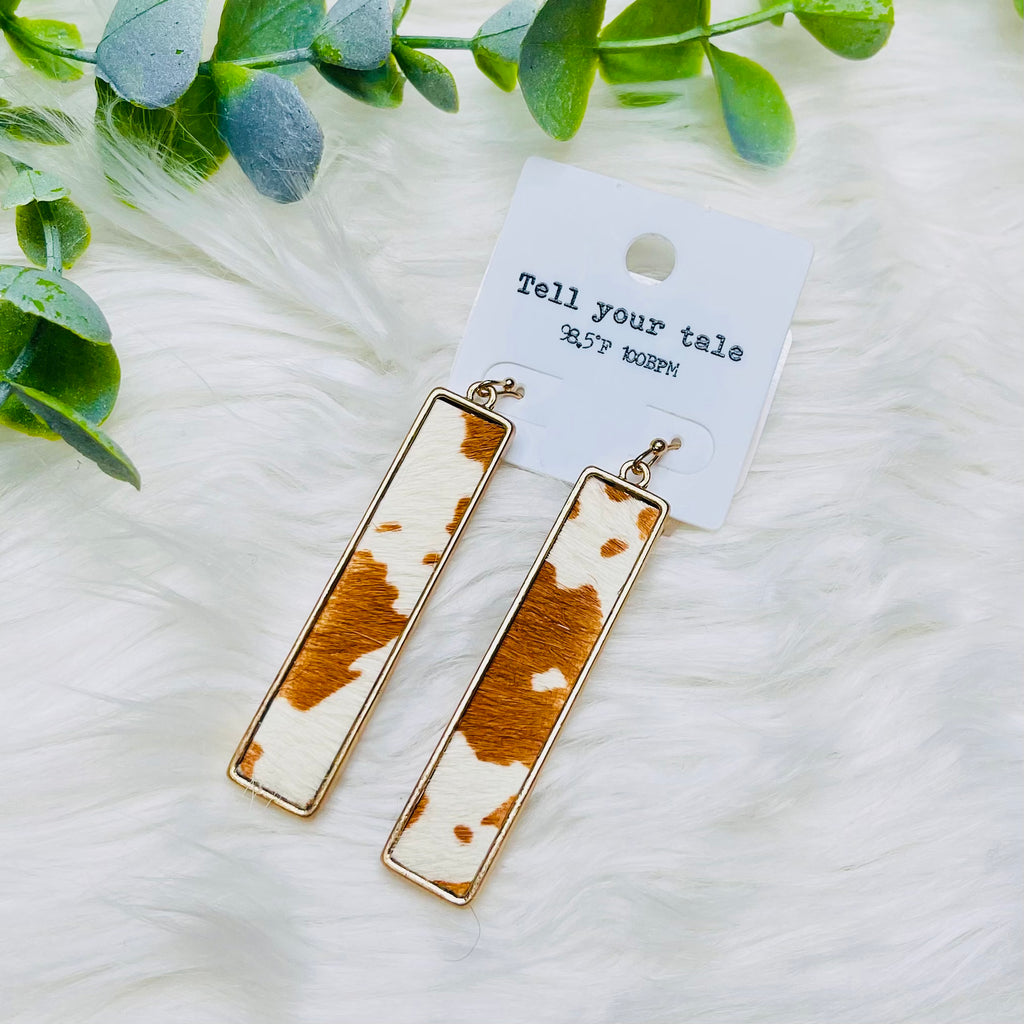 Cow Print Textured Rectangle Earrings