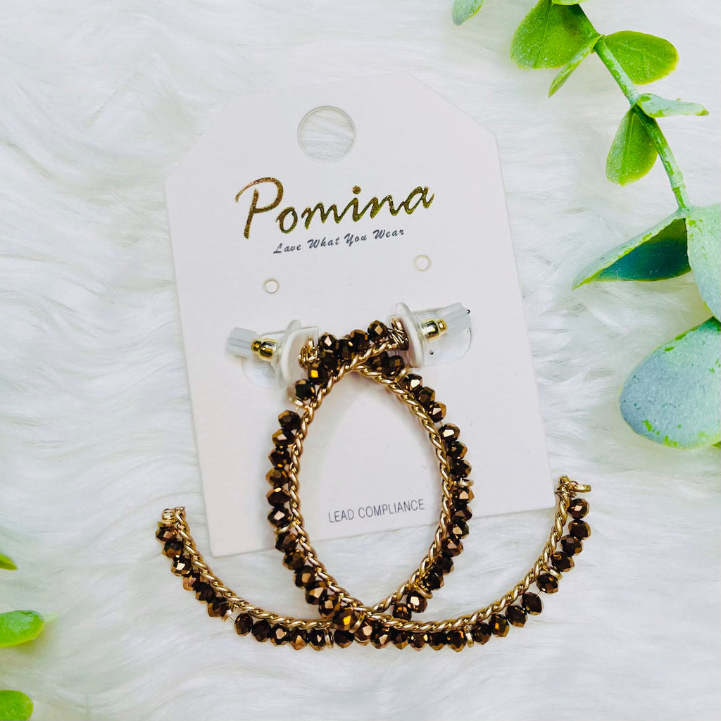 Beaded Gold Twisted Hoop Earrings
