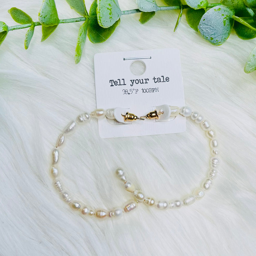 Cream Pearl Hoop Earrings