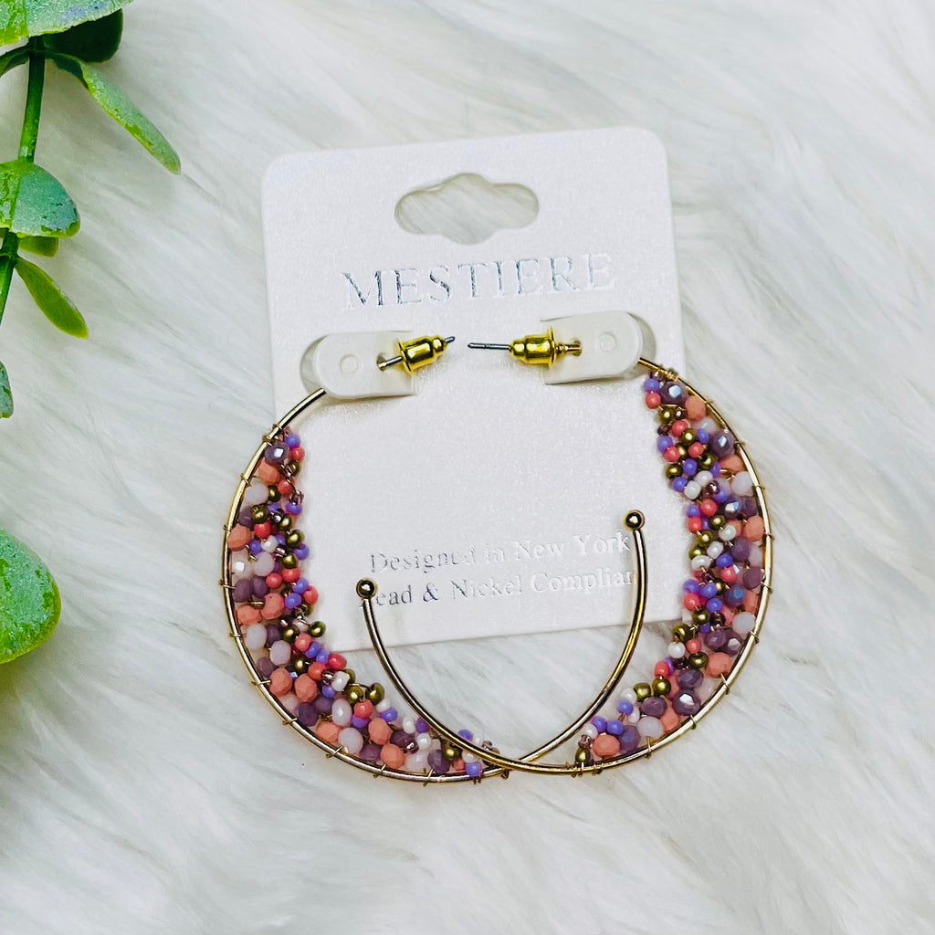 Crescent Beaded Hoop Earrings