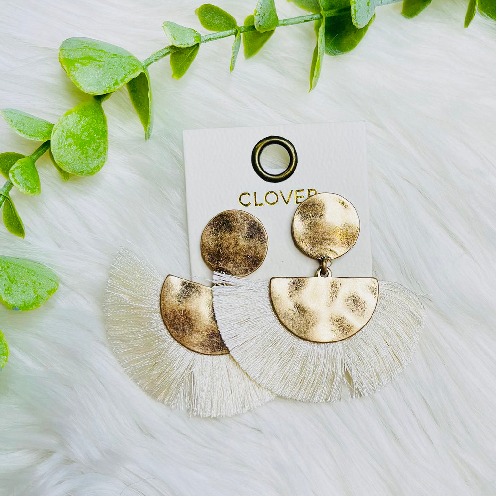Cream Fringe Gold Round Half Circle Earrings