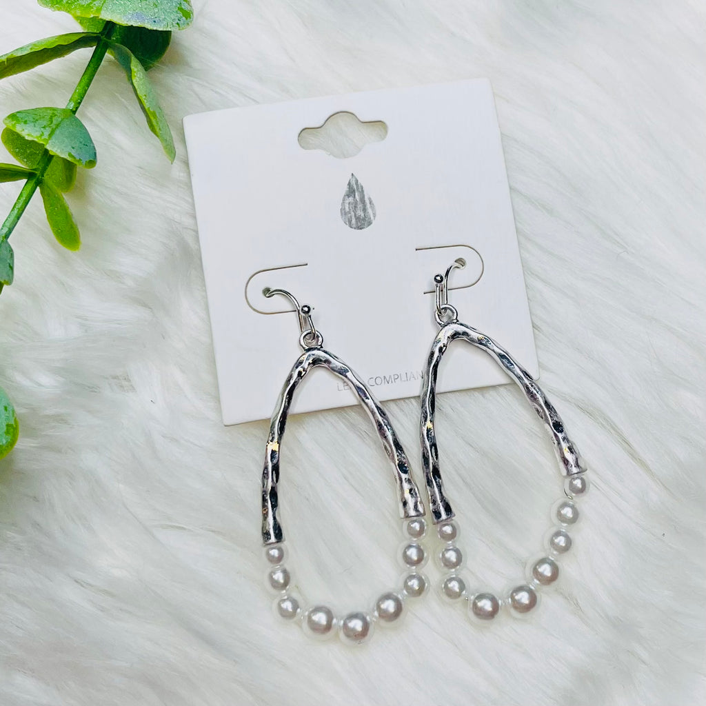 Pearl Teardrop Metal Earrings