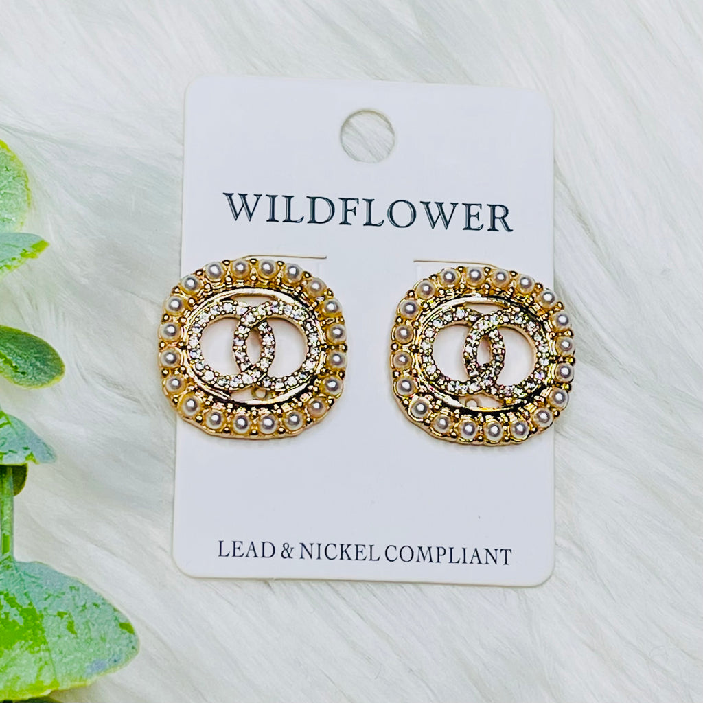 Double O Rhinestone Pearl Earrings