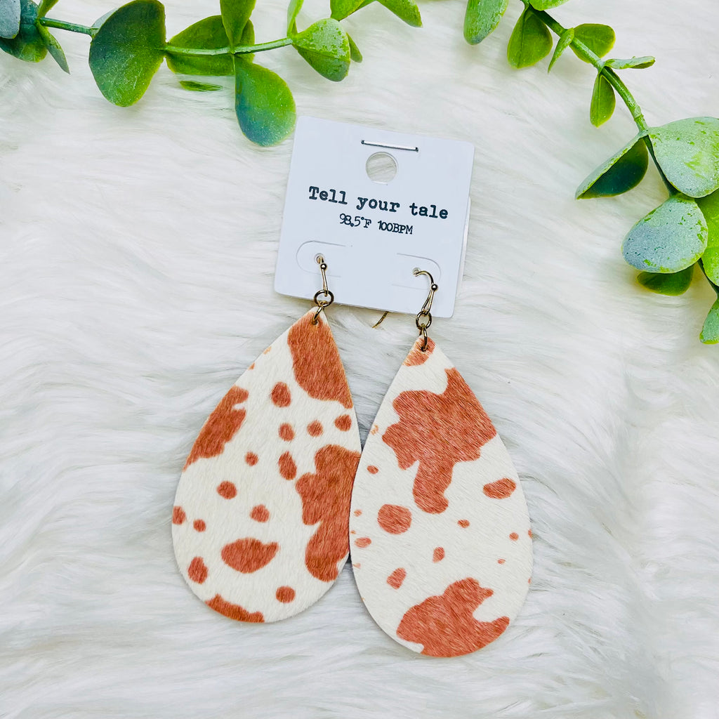 Cow Print Textured Teardrop Earrings