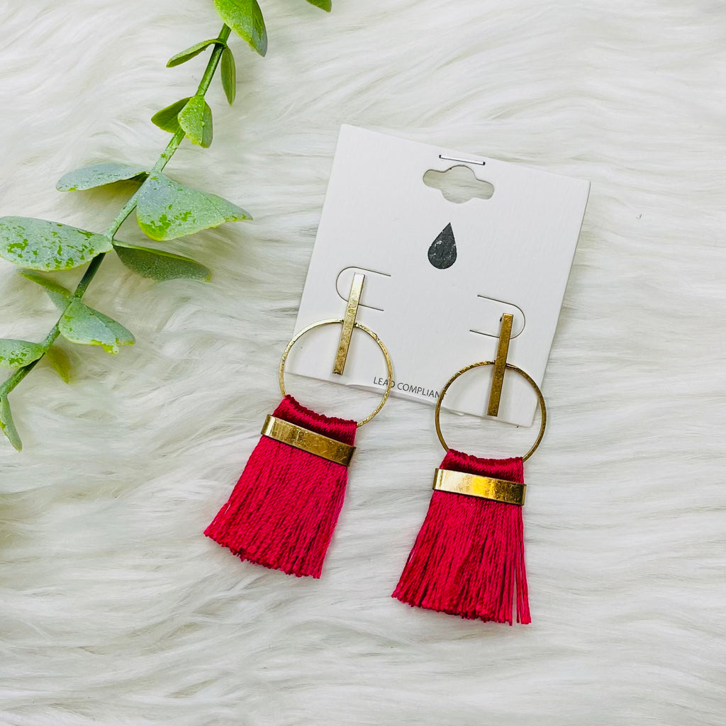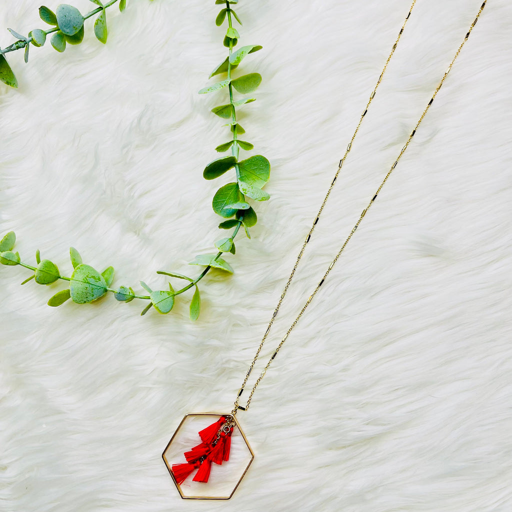 Red Hexagon Tassel Gold Necklace