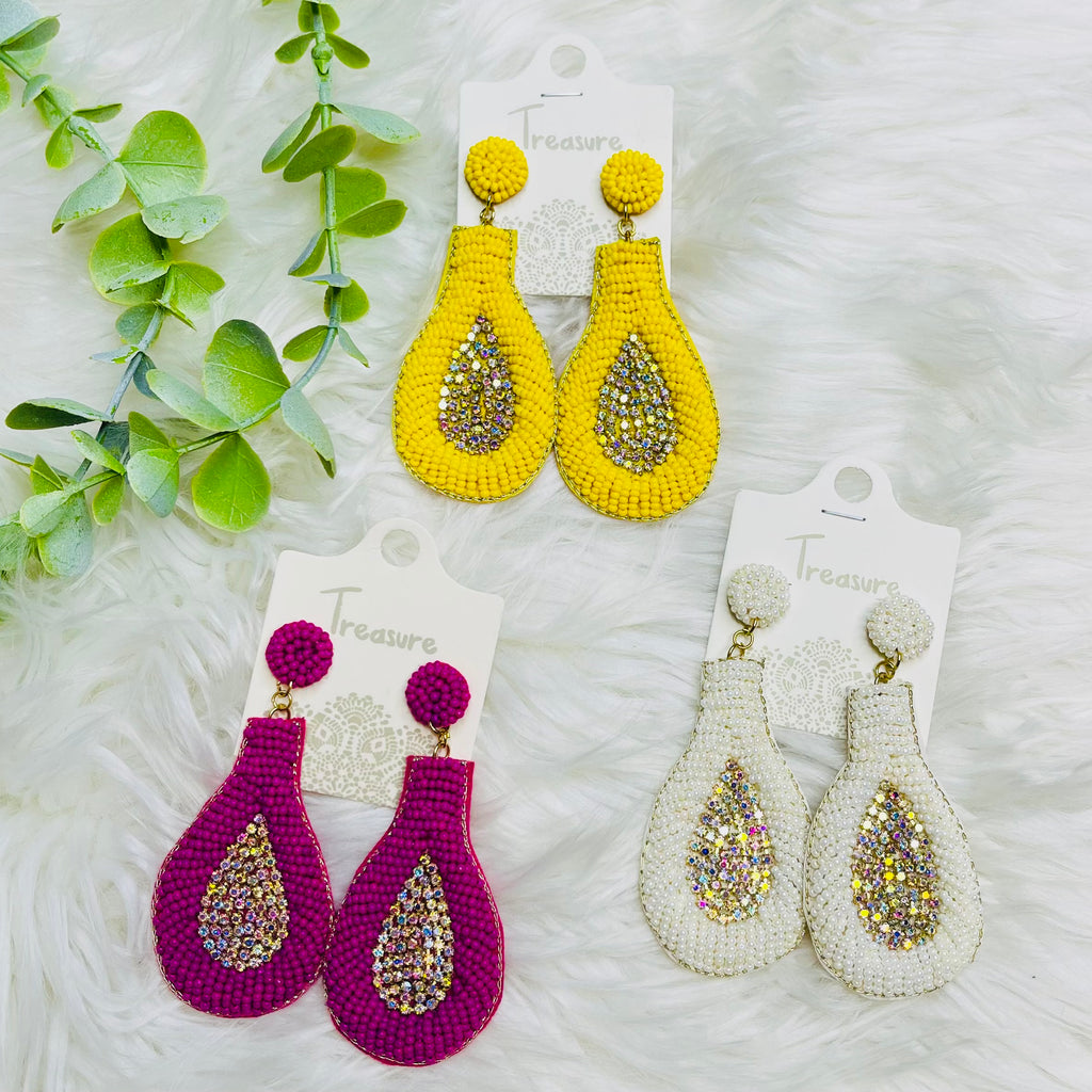 Squared Teardrop Seedbead Rhinestone Earrings