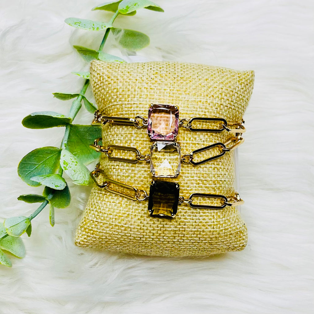 Gold Open Chain Crystal Gem Bracelet