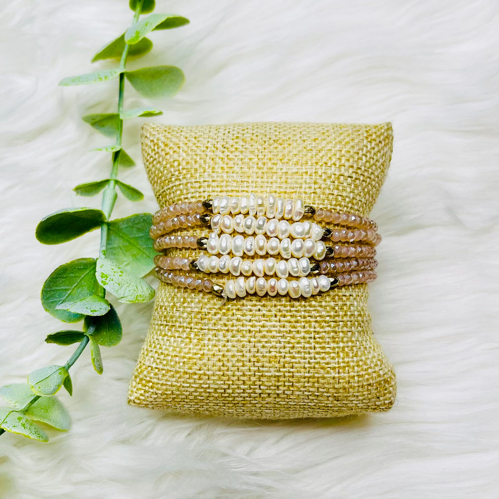 Pink Crystal Freshwater Pearl Bracelets Set of 5