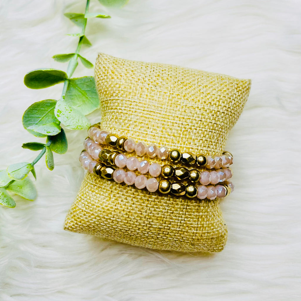 Pink Gold Beaded Bracelets Set of 3