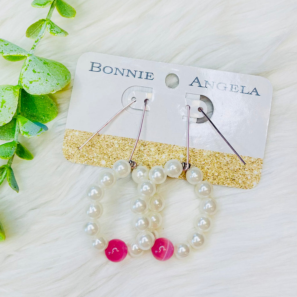 Bonnie Angela Pearl With Pink Hoop Earrings