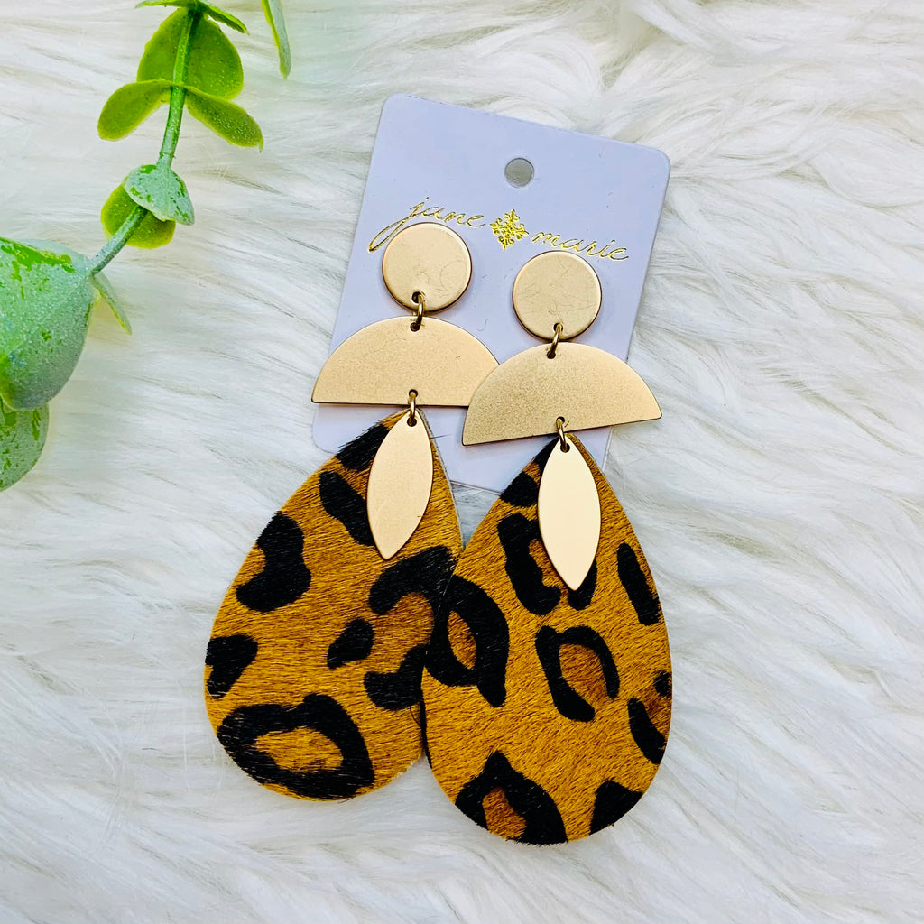 Leopard Textured Gold Geometric Earrings