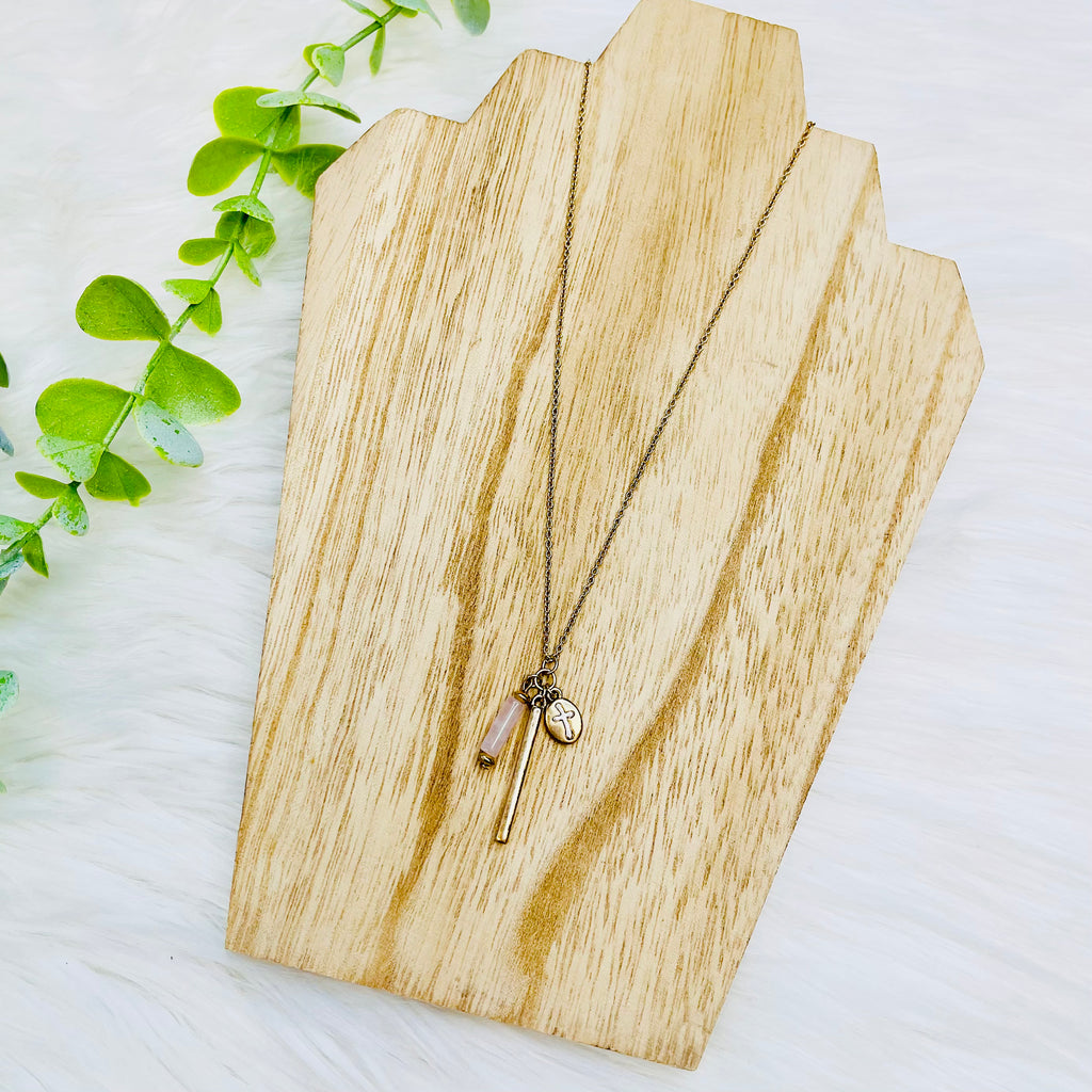 Pink Gold Bar Cross Charm Necklace