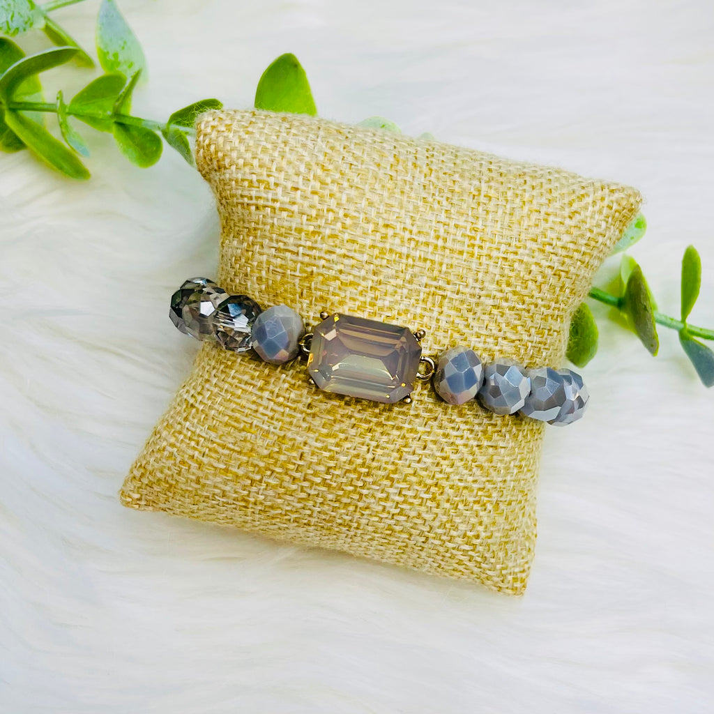 Grey Pearl Beaded Gem Stone Bracelet