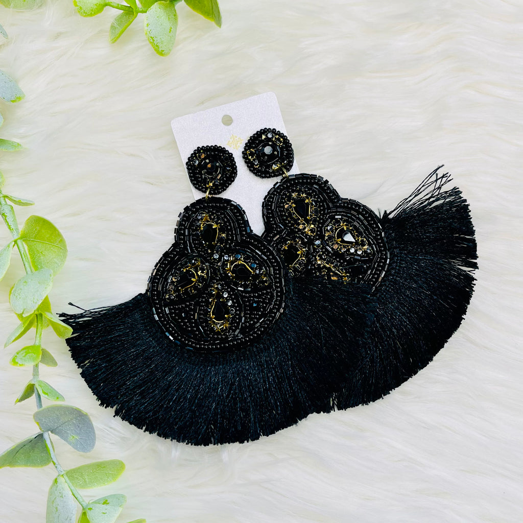 Big Black Tassel Design Bling Earrings