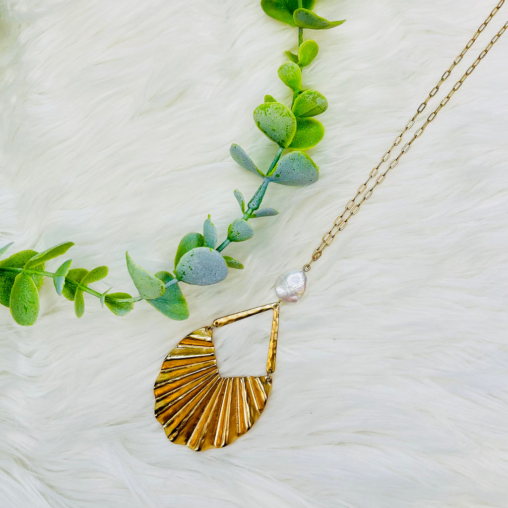 Gold Crinkled Teardrop Pearl Necklace