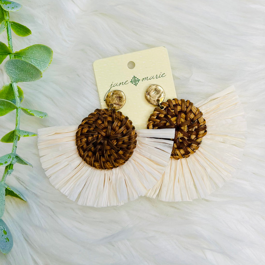 Cream Rafia Brown Weaved Earrings