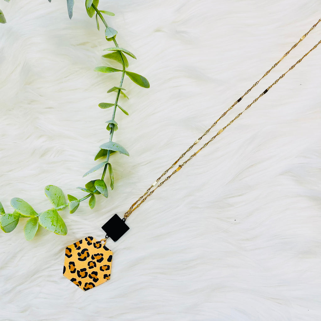 Brown Mustard Leopard Hexagon Necklace