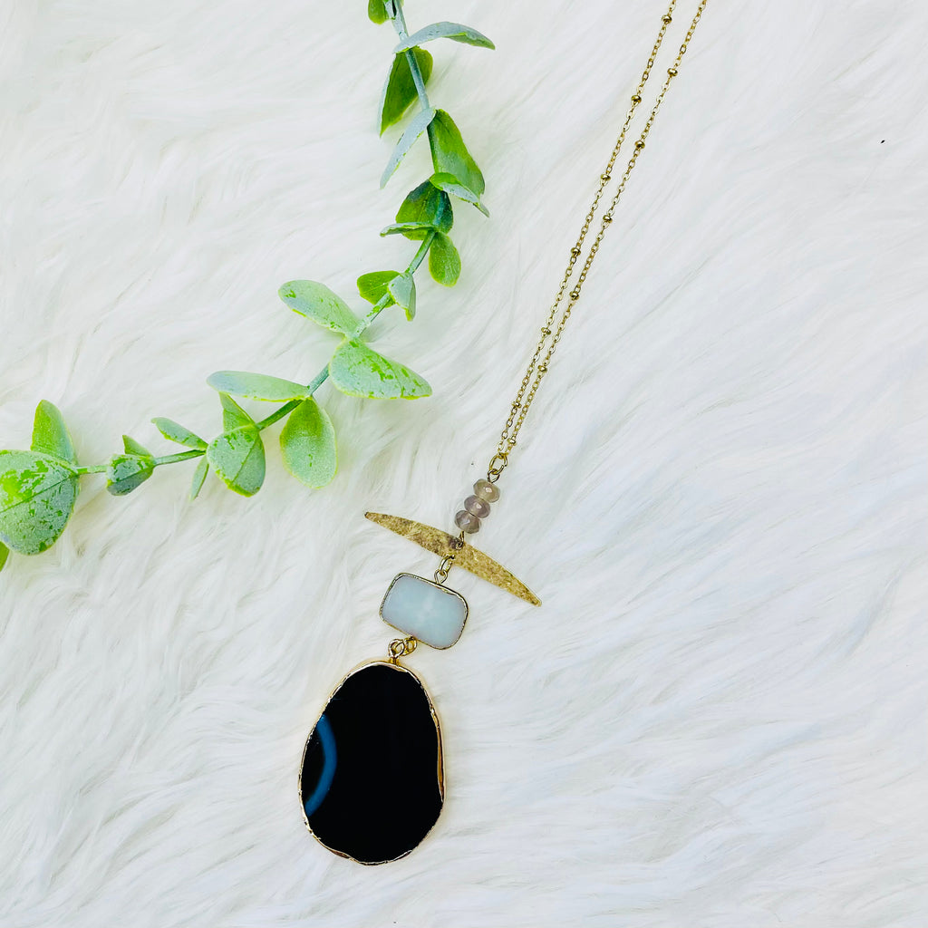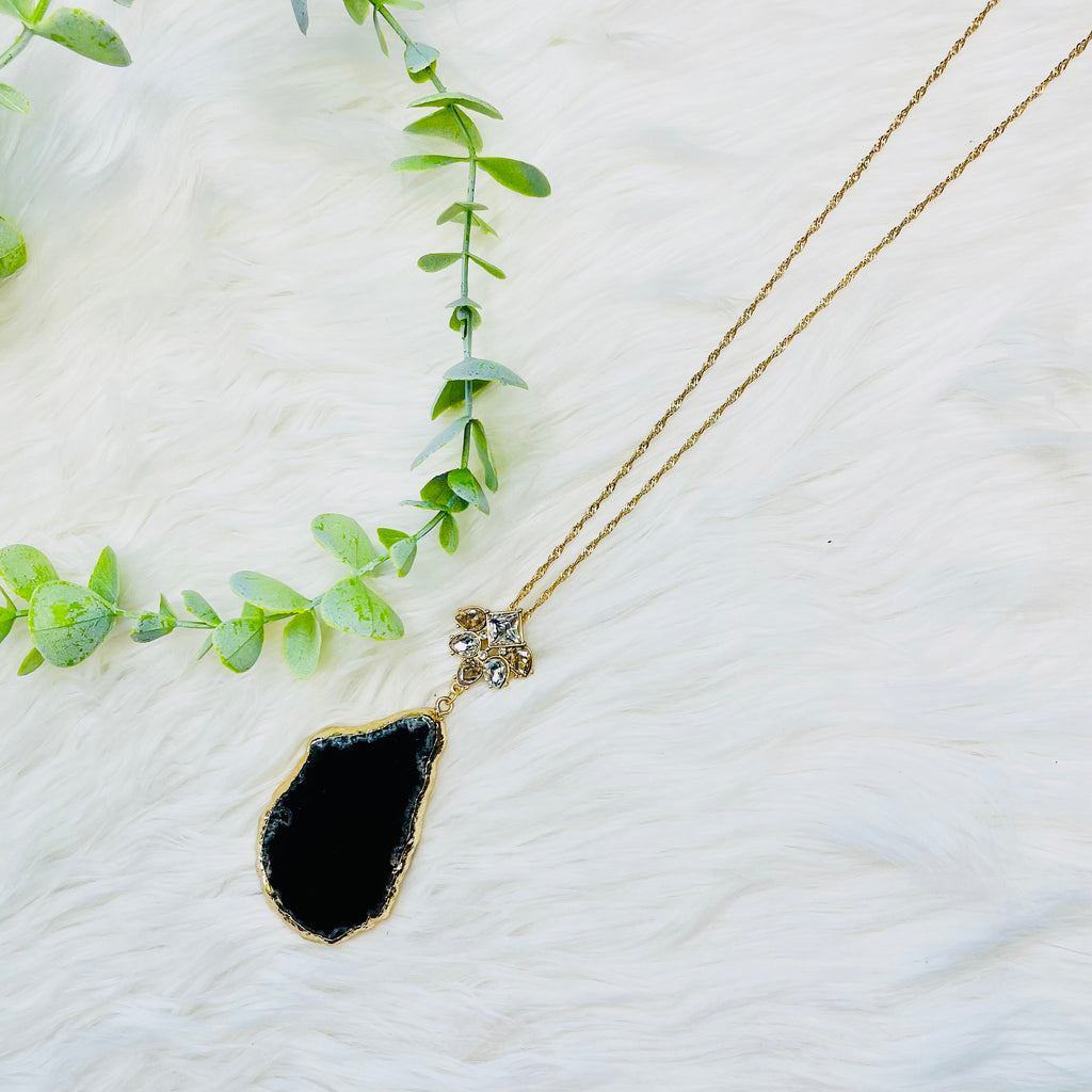 Black Stone Gold Bling Necklace