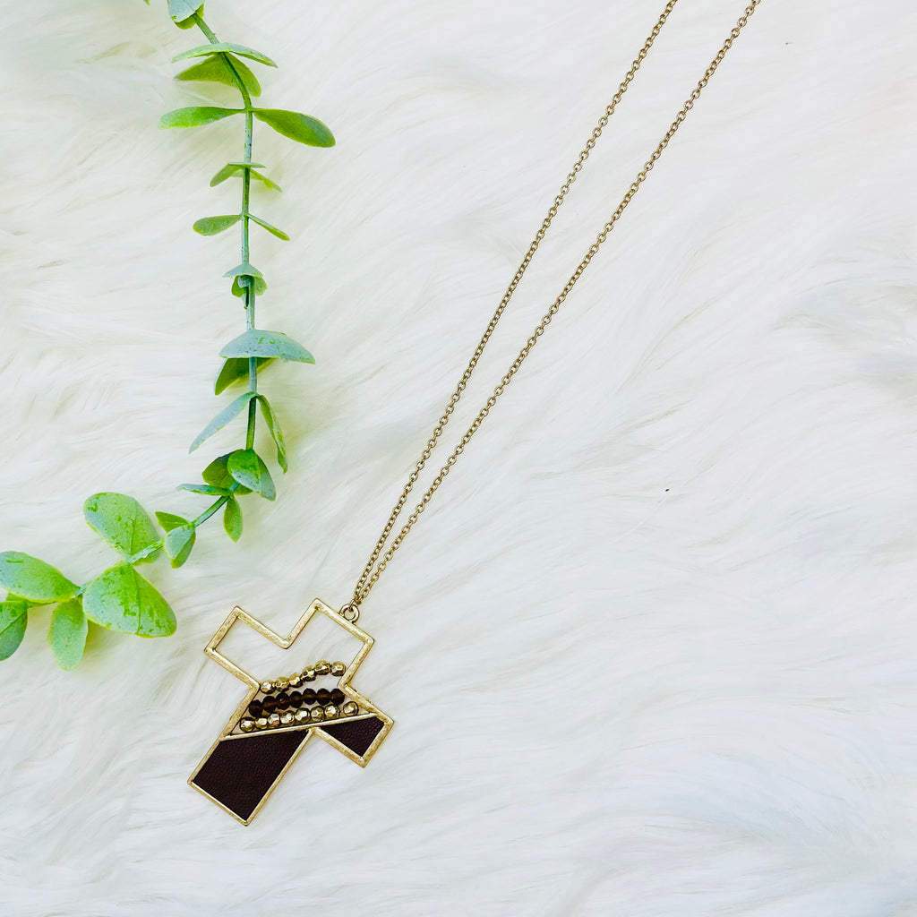 Gold Metal Beaded Leather Necklace