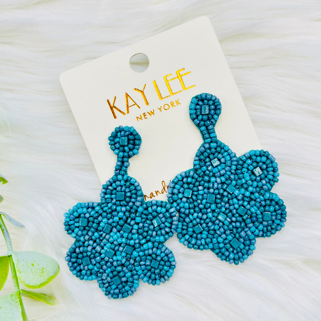 Teal Seedbead Flower Earrings
