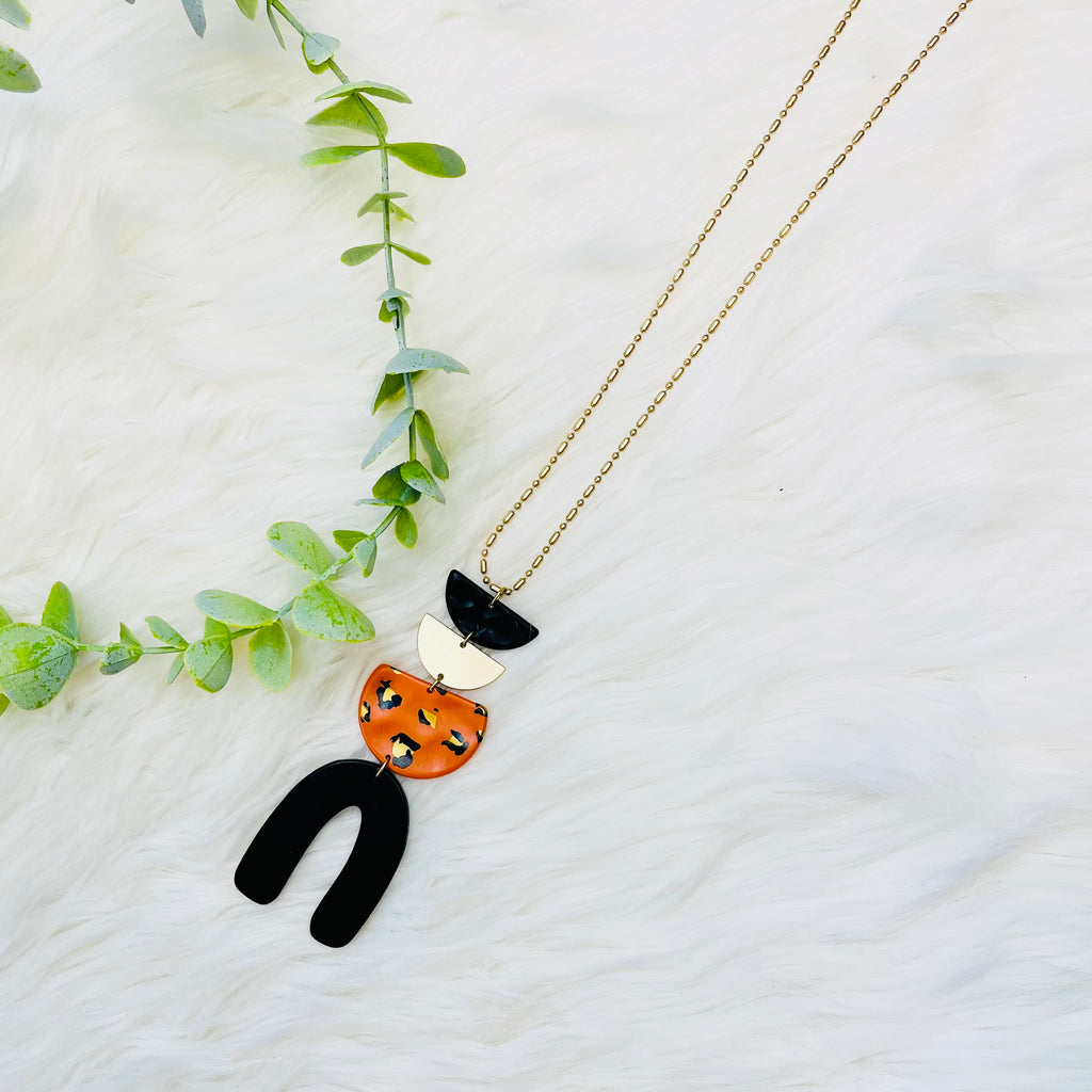 Rust Black Leopard Clay Necklace